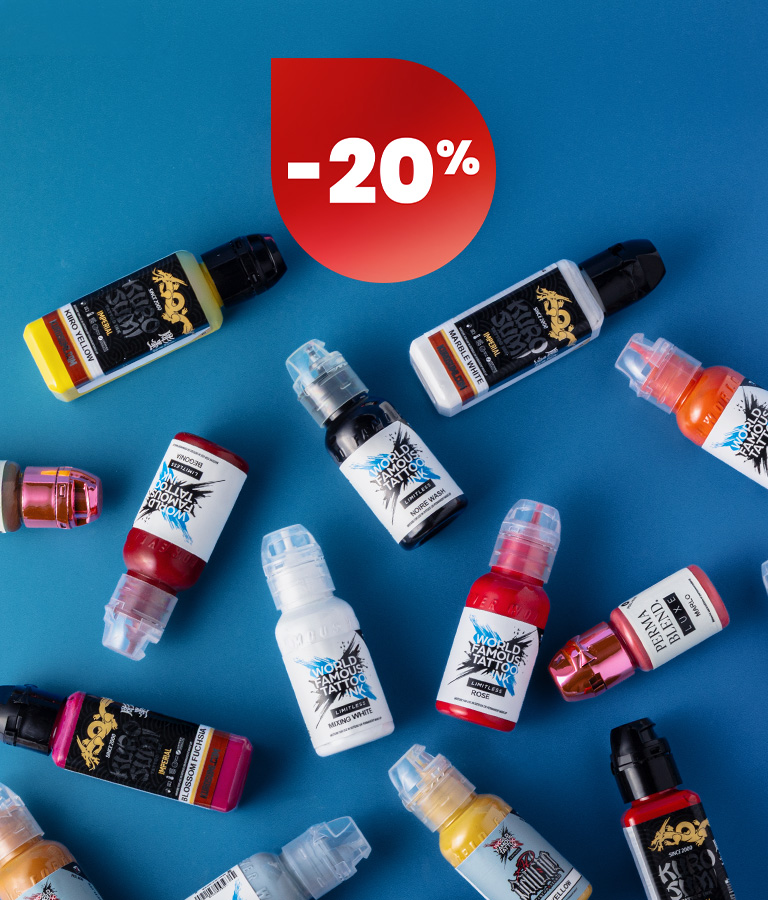 Entdecke unser umfangreiches Sortiment an Tattoomaschinen, Tattoofarben, Tattoonadeln, Nadelmodulen und Tattoo Aftercare Produkten.