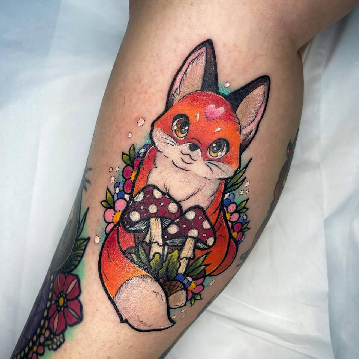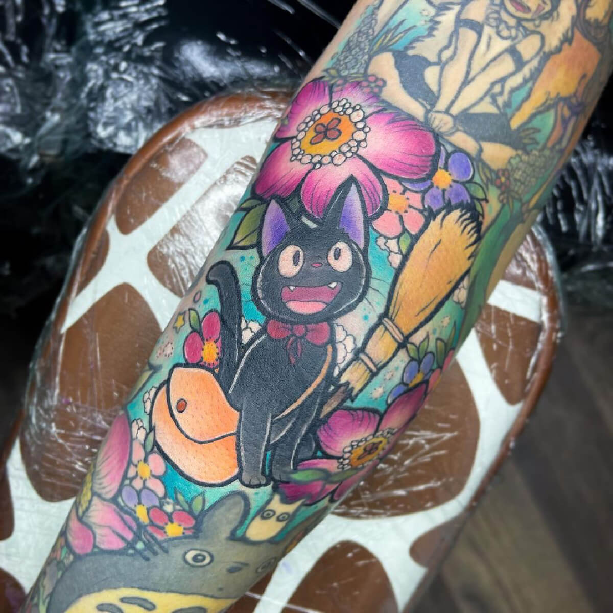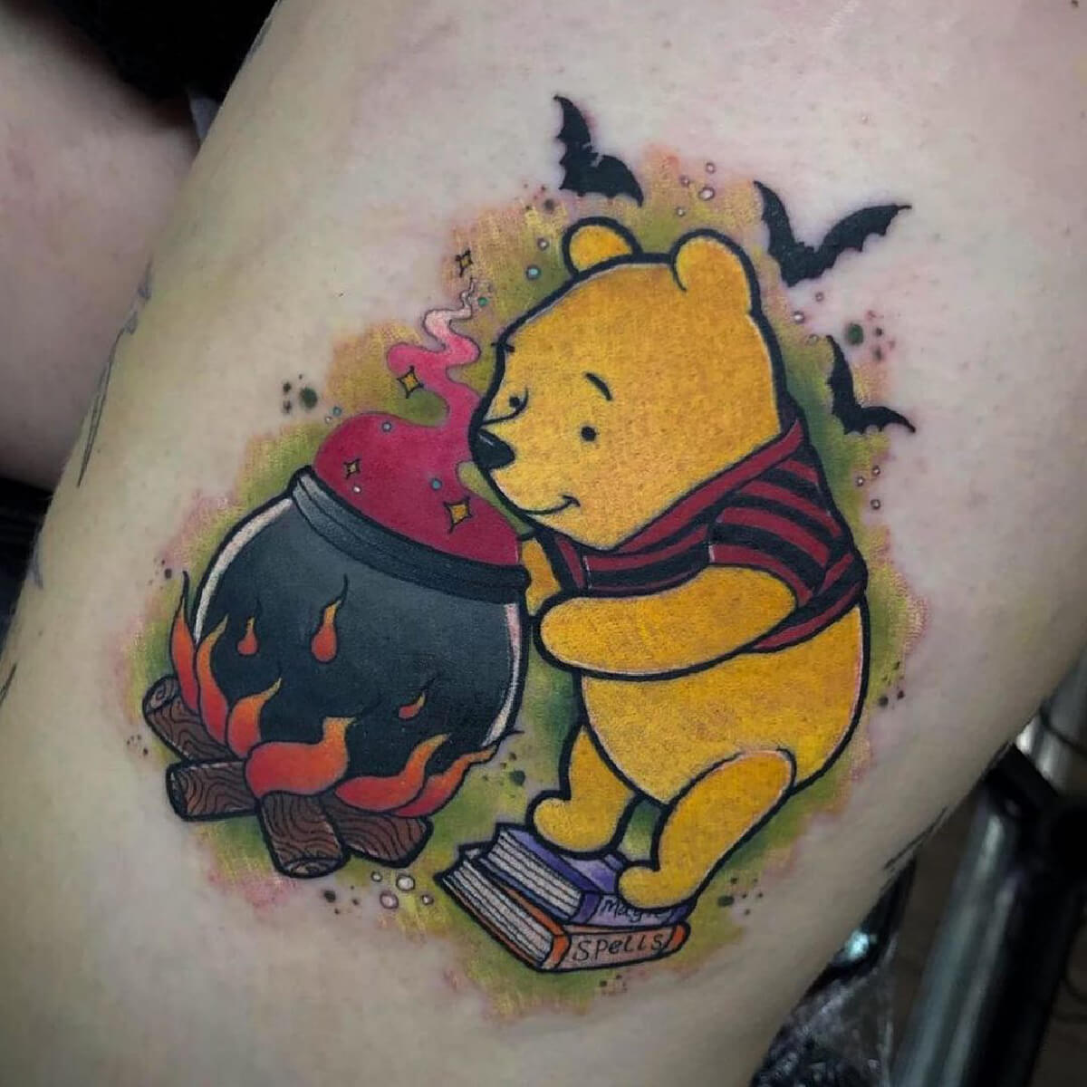 Ich liebe es, süße Motive in Halloween-inspirierte Designs zu verwandeln, wie Disney-Figuren, Waldtiere oder kleine Geister. Wenn ich mich für eines entscheiden müsste, denke ich an ein großes Disney-Schloss, das ich tätowiert habe, umgeben von Kürbissen und kleinen Fledermäusen – das hat unglaublich viel Spaß gemacht!