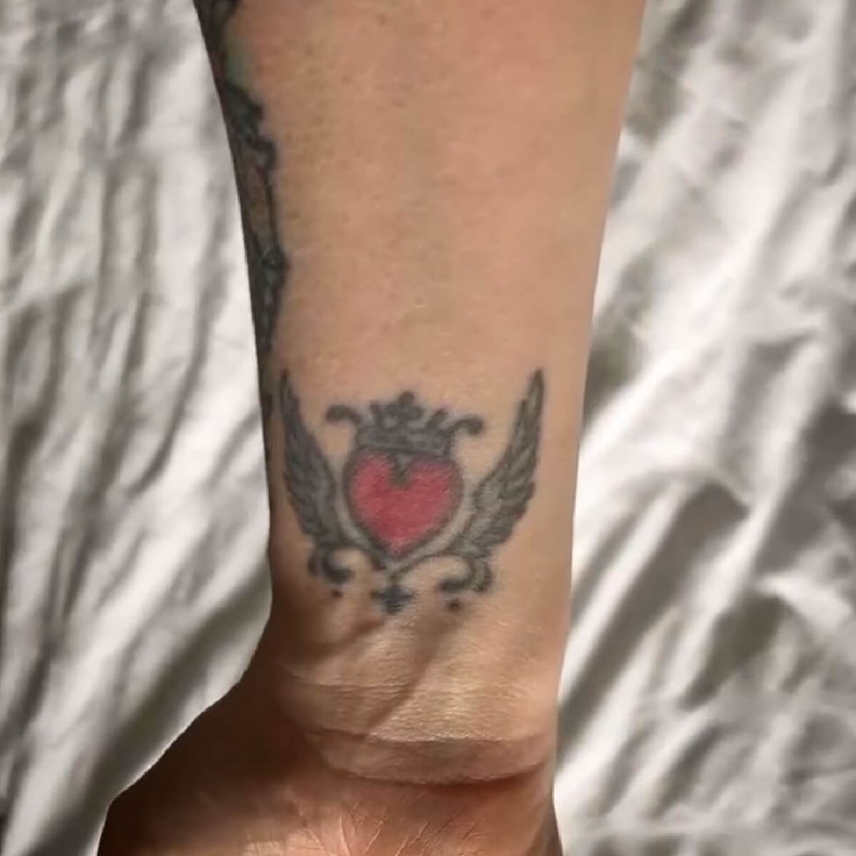 Dann drehte er sich zu mir um und sagte: „So, jetzt bist du dran!“ Woraufhin ich antwortete: „Okay, was möchtest du mir tätowieren?“ Natürlich geriet er sofort in Panik, weil er nur einen Scherz gemacht hatte (und noch nie zuvor ein Tattoo gestochen hatte). Aber ich meinte, ich würde ihn durch den Prozess führen.