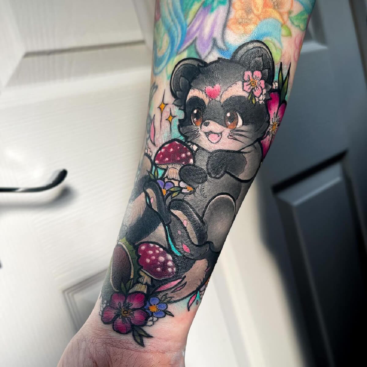 Ich war schon in jungen Jahren fasziniert von Tattoos und habe es geliebt zu zeichnen! Mein Vater war immer sehr künstlerisch, und ich denke, ich bin in seine Fußstapfen getreten. Als Teenager entdeckte ich einen Künstler namens Mike Lesage, besser bekannt als Mike Giant. Ich war ein riesiger Fan seiner Arbeiten und habe versucht, seine Zeichnungen in der Schule auf meine Bücher (sehr zum Missfallen der Lehrer!) und auf meine Arme zu übertragen.