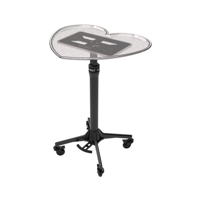 Die Basis von Ghost bietet eine innovative Fußhebel-Bedienung, mit der Sie die Höhe Ihres Tabletts von 24 bis 36 Zoll (ca. 61 bis 91 cm) anpassen können, ohne Gefahr von Kreuzkontamination..