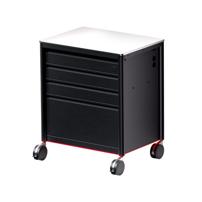 Im Vergleich zur Workstation der ersten Generation bietet die 2.0 eine neue interne Gehäusearchitektur mit optimaler Verwendung von Metall, um einen robusteren und dennoch leichteren Gehäuserahmen zu schaffen. META hat auch alle Schubladen im Inneren verbessert und verfügen jetzt über ein neues Verriegelungssystem, das verhindert, dass sie sich öffnen, während der Arbeitsplatz bewegt wird. Außerdem wurden bei der Workstation 2.0 die Farbschubladen entfernt und durch eine neue Seitenfläche ersetzt, die über 2 Einschübe zur unendlichen Erweiterung mit neuem Zubehör verfügt.